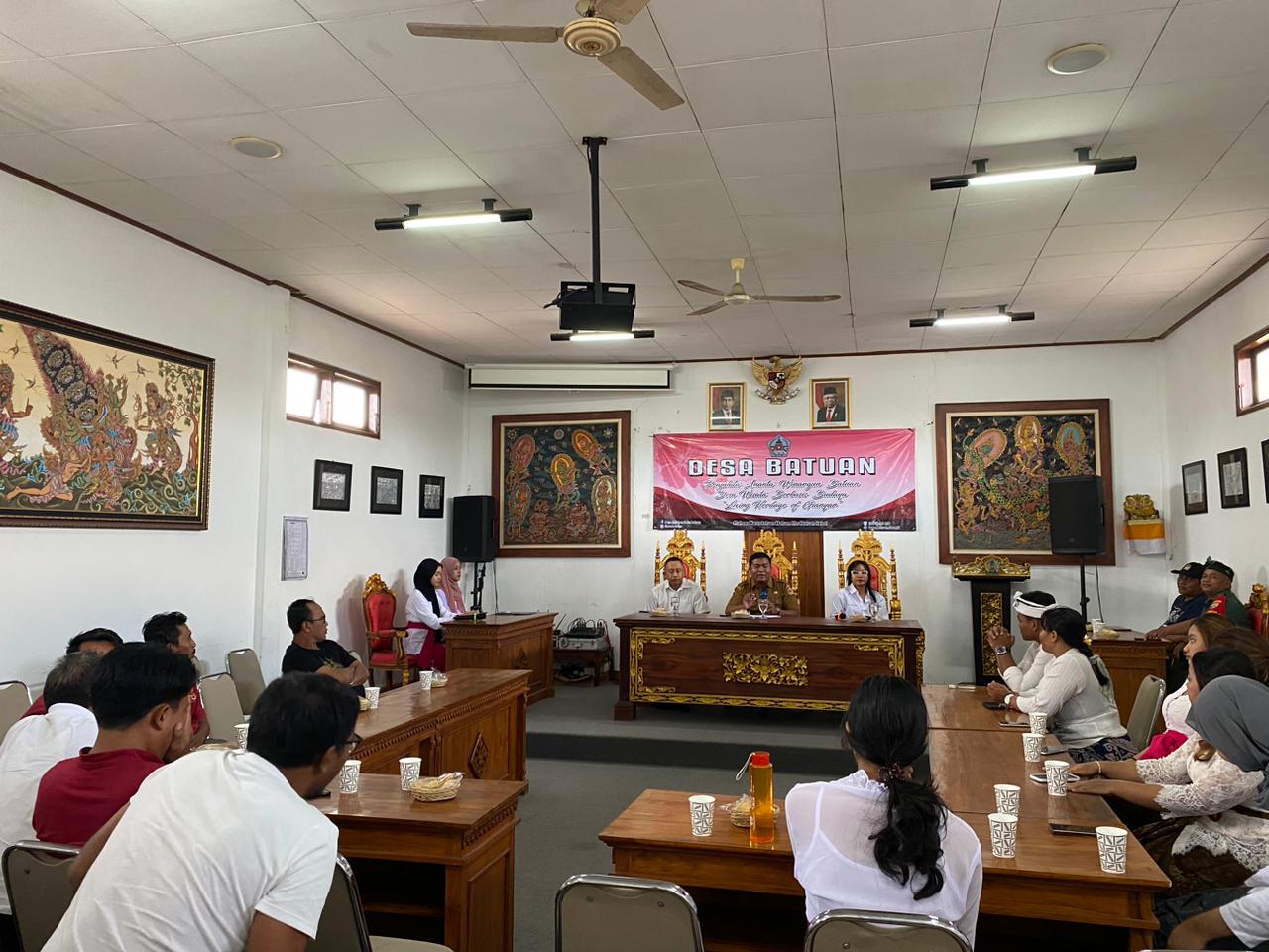 Acara penerimaan mahasiswa FISIP Unud oleh Desa Batuan tersebut berlangsung hangat dan ramai. Acara dihadiri oleh 33 orang yang terdiri atas 15 mahasiswa FISIP Unud yang mengikuti program MBKM KKNT III tahun 2023, Ari Anggara selaku Perbekel Desa Batuan, I Dewa Ayu Sugiarica Joni, S.Sos, MA. selaku Korprodi Ilmu Komunikasi dan Dr. Tedi Ervianto, SIP. M.Si selaku Korprodi Ilmu Politik yang juga menjadi DPL Program Studi, serta para pemangku kepentingan Desa Batuan (Ketua BPD, Kadus, Babinsa, serta para jajaran staf Desa Batuan.