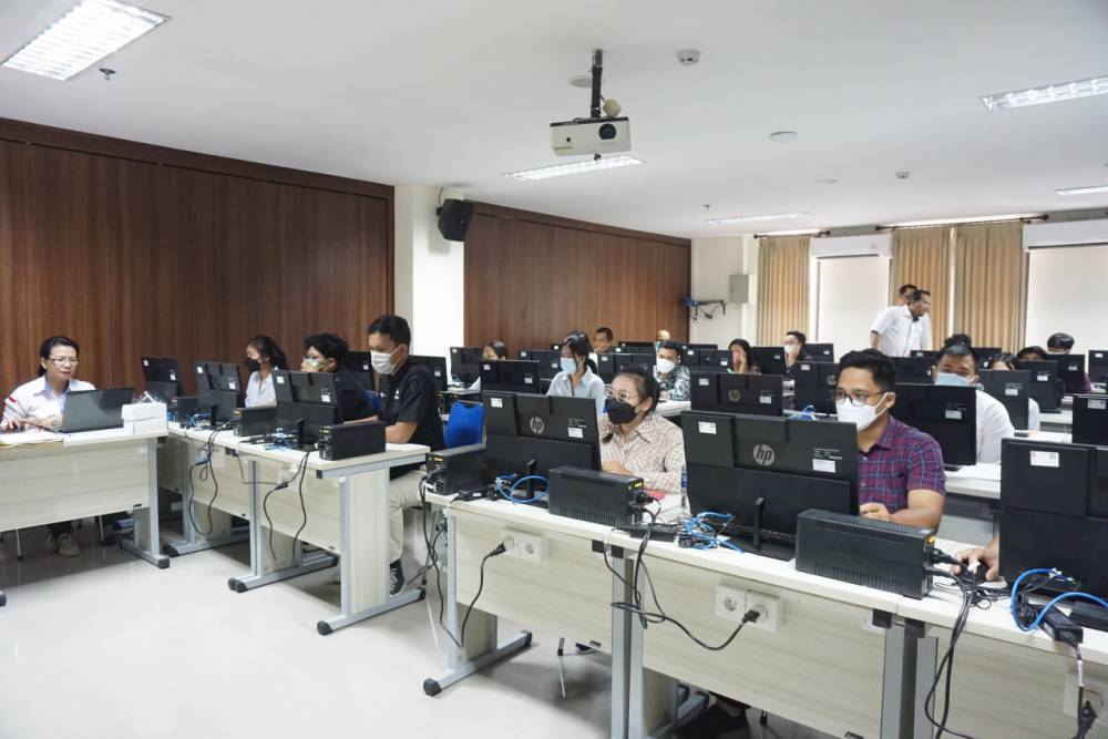 Universitas Udayana (Unud) menyelenggarakan Ujian Tulis Berbasis Komputer (UTBK) Seleksi Penerimaan Mahasiswa Baru Program Pendidikan Dokter Spesialis (PPDS) dan Program Pascasarjana Semester Genap Tahap II Tahun Akademik 2022/2023, Senin (16/1/2023). Dalam kesempatan ini, Kepala Biro Akademik, Kerjasama dan Humas Unud Drs. IGN Indra Kecapa didampingi oleh Koordinator Akademik dan Statistik meninjau pelaksanaan UTBK.
