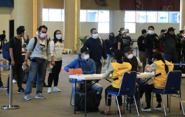 PENGECEKAN – PMI yang baru datang di Bandara Ngurah Rai langsung menjalani pengecekan kesehatan.