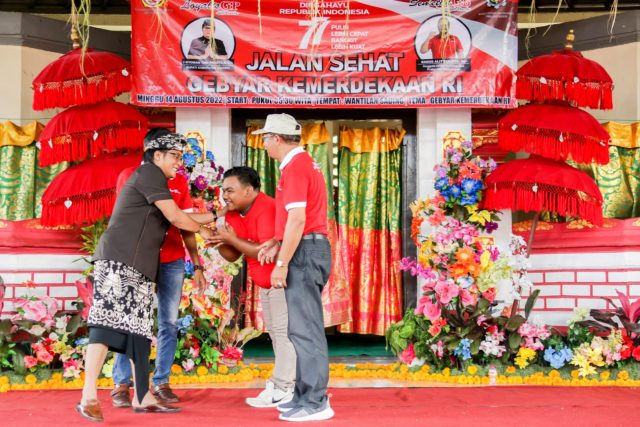 Bupati Badung Nyoman Giri Prasta menghadiri kegiatan Jalan Sehat Gebyar Kemerdekaan RI di Kelurahan Sading, Kecamatan Mengwi, Minggu (14/8) bertempat di Wantilan Desa Adat Sading. Turut hadir anggota DPRD Bali I Bagus Alit Sucipta, anggota DPRD Badung Dapil Mengwi, jajaran Tripika Kecamatan Mengwi, prajuru Desa Adat Sading, jajaran Karang Taruna dan Saba Yowana Kelurahan Sading serta tokoh dan masyarakat Kelurahan Sading.