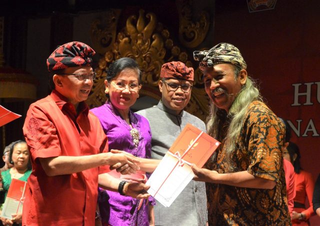 Sementara itu, Kepala Dinas Kebudayaan Provinsi Bali I Wayan ‘Kun’ Adnyana menjabarkan, serangkaian dengan HUT Disbud Bali tahun ini juga diberikan penghargaan bertajuk ‘Patakam Patram Budaya’ kepada sanggar seni yang dianggap sudah berperan dalam kemajuan seni. “Penilaian yang diberikan untuk sertifikat yang berlaku selama 5 tahun ini, bekerja sama dengan Listibya Bali dan kita harapkan para penerima yang berjumlah 30 kali ini mampu menjadi acuan bagi pengembangan kesenian Bali ke depannya. Untuk tahun berikutnya, kita alokasikan 200 sanggar atau yayasan seni lain untuk menerima sertifikasi serupa,” kata akademisi ISI Denpasar ini.