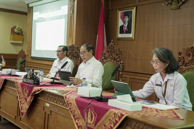 Akuntabilitas Kinerja Instansi Pemerintah (AKIP) Pemkab Badung tahun 2024 dievaluasi Tim Kementerian Pendayagunaan Aparatur Negara dan Reformasi Birokrasi (Kemenpan RB) melalui in-depth interview (zoom) di ruang Kriya Gosana, Puspem Badung, Rabu (19/6). Evaluasi SAKIP dihadiri Wakil Bupati Badung I Ketut Suiasa serta pejabat di lingkungan Pemkab Badung.
