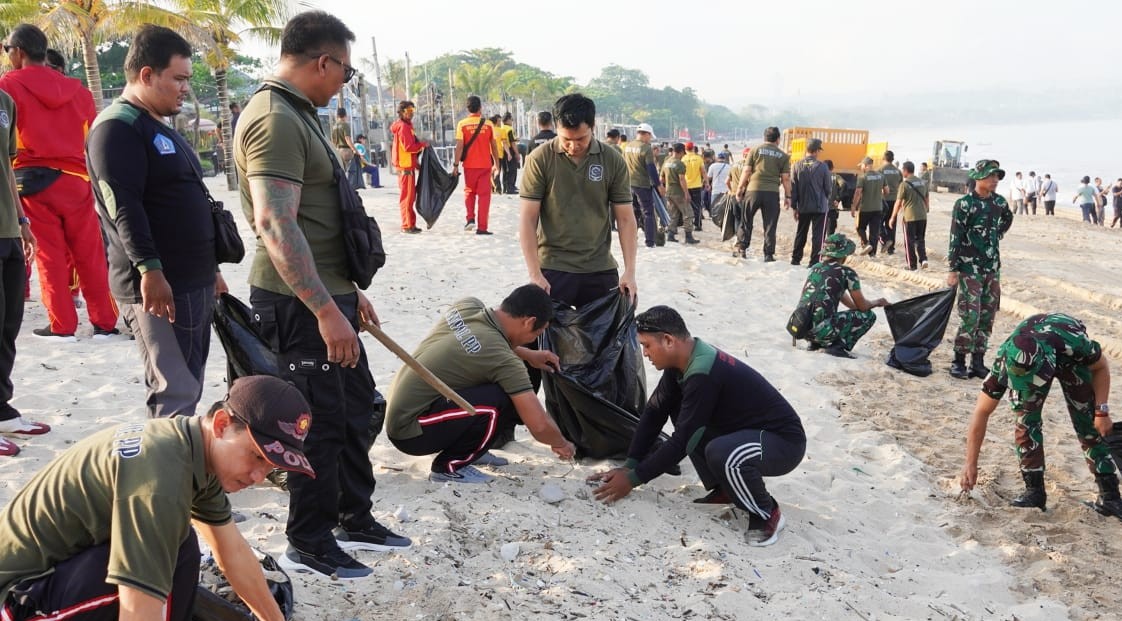 Ratusan aparatur sipil negara (ASN) dari berbagai instansi di lingkungan Pemerintah Provinsi Bali menggelar aksi bersih-bersih di pesisir Pantai Kedonganan, Badung, pada Sabtu (8/3). Kegiatan ini merupakan bagian dari peringatan HUT ke-75 Satuan Polisi Pamong Praja (Satpol PP) dan HUT ke-63 Satuan Perlindungan Masyarakat (Satlinmas) Provinsi Bali.