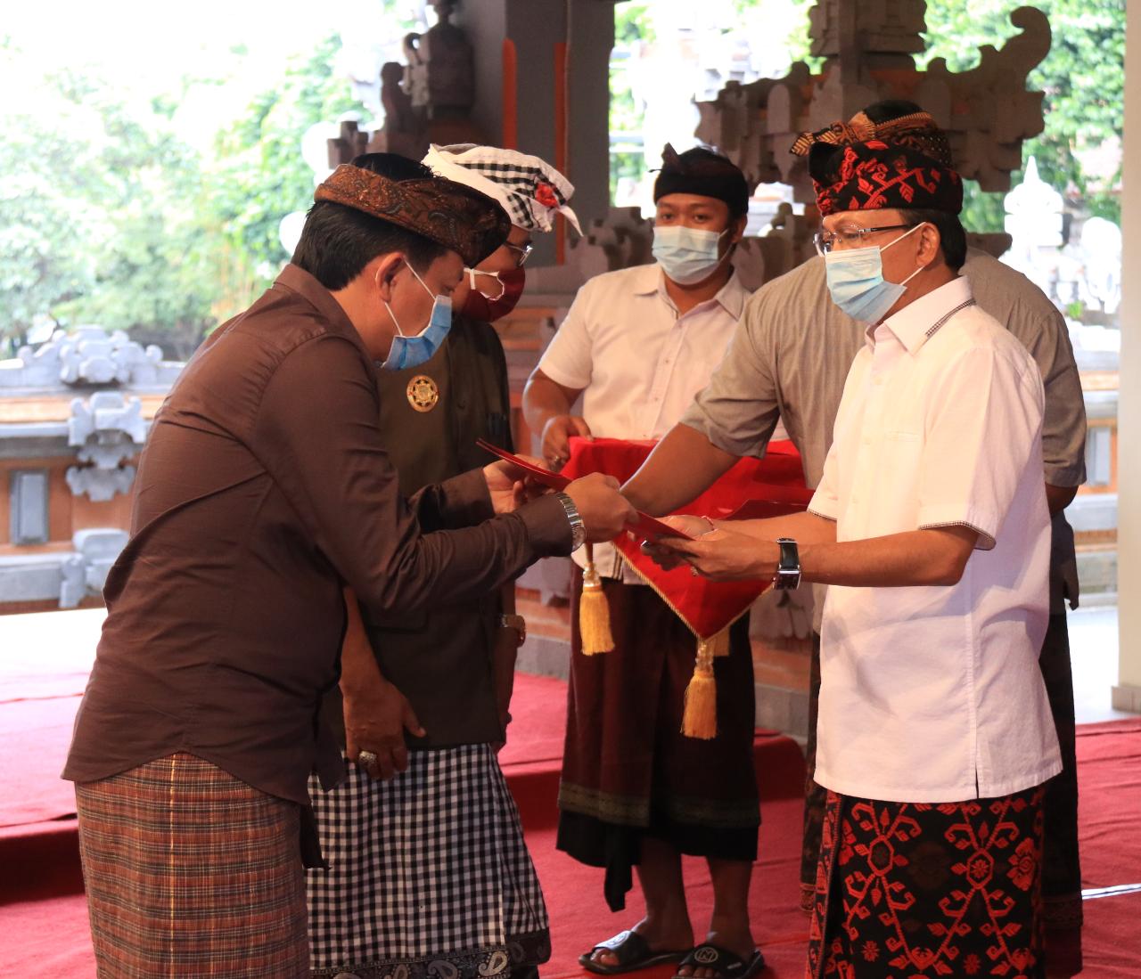 DANA – Gubernur Koster menyerahkan dana kepada desa adat untuk mengaktifkan kembali Satgas Gotong Royong.
