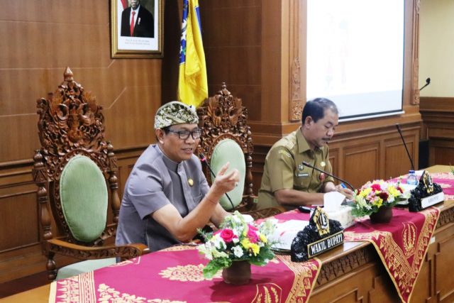 ANNUAL – Wabup Suiasa didampingi Kepala DPMPTSP I Made Agus Aryawan saat menghadiri Annual Meeting Mal Pelayanan Publik bertempat di Ruang Kriya Gosana Lantai III Puspem Kabupaten Badung, Selasa (28/1).