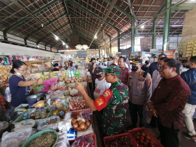KE PASAR – Forkopimda Denpasar di sebuah pasar tradisional untuk mengecek stok dan harga minyak goreng.