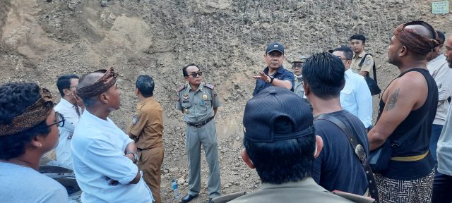 Menyikapi terkait laporan adanya galian di sisi timur Pura Parahyangan Pasek Punduk Dawa, Desa Pikat, Dawan, Klungkung, aparat Pemerintah Provinsi (Pemprov) Bali mengeruduk lokasi galian tersebut, Senin (15/8). Sejumlah pejabat eselon II pun tampak dalam sidak itu. Di antaranya Kasatpol PP Provinsi Bali, Kadis PUPR Provinsi Bali, Kelompok Ahli Gubernur, Kasat Pol PP Klungkung, serta aparat lainnya.