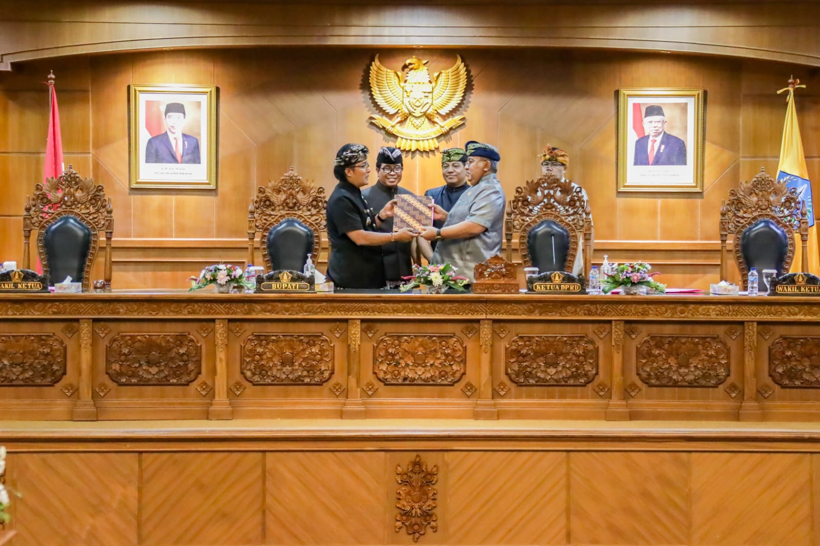 Bupati Badung Nyoman Giri Prasta menyampaikan Jawaban Pemerintah Terhadap Pemandangan Umum Fraksi-fraksi DPRD Kabupaten Badung Atas Rancangan KUA-PPAS Tahun Anggaran 2023 dan 4 ranperda lainnya pada Rapat Paripurna DPRD Kabupaten Badung, Kamis (4/8). Turut hadir Ketua DPRD Badung Putu Parwata bersama Wakil Ketua I DPRD Badung Wayan Suyasa, Wakil Ketua II DPRD Badung Made Sunarta serta jajaran anggota DPRD Kabupaten Badung, Forum Koordinasi Pimpinan Daerah Kabupaten Badung, Sekretaris Daerah beserta seluruh pimpinan OPD di lingkup Pemerintah Kabupaten Badung, pimpinan instansi vertikal di Kabupaten Badung dan para direksi perusahaan daerah Kabupaten Badung.