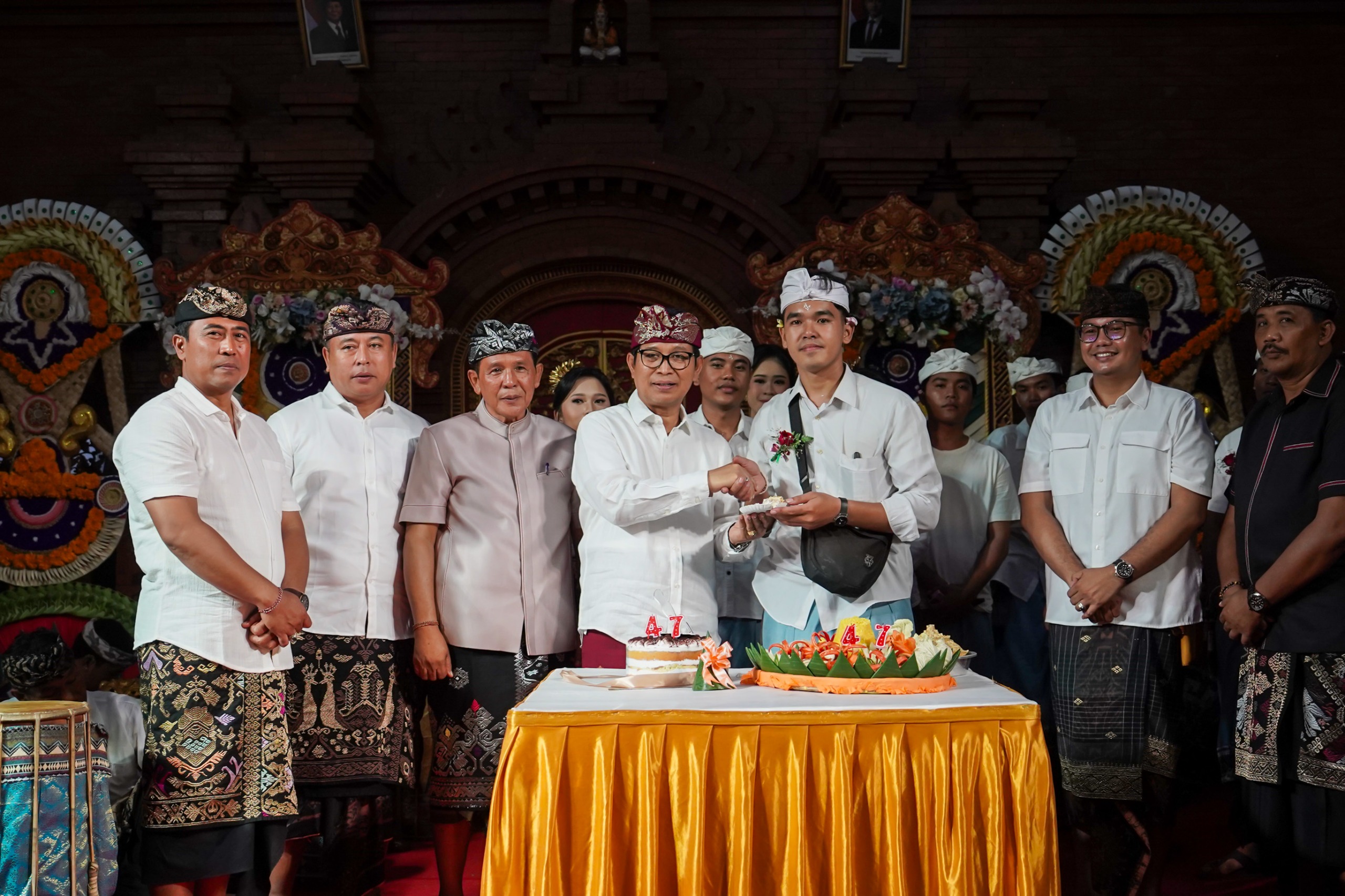 Bupati Badung I Wayan Adi Arnawa menghadiri perayaan HUT ke-47 ST Eka Chanti, Banjar Beluran, Kerobokan Kaja, Kecamatan Kuta Utara, Badung, Selasa (20/5). Turut hadir dalam kesempatan ini anggota DPRD Bali Agung Bagus Tri Candra Arka, anggota DPRD Badung I Wayan Sandra, Camat Kuta Utara I Putu Eka Permana serta unsur tripika Kecamatan Kuta Utara, Lurah Kerobokan Kaja IGAN Marhaena Yasana Putra, Bendesa Adat Kerobokan, Ketua Yowana Cakra Dharma Desa Adat Kerobokan, kelian adat, dinas dan kaling se-Kelurahan Kerobokan Kaja, Ketua ST se-Kelurahan Kerobokan Kaja.