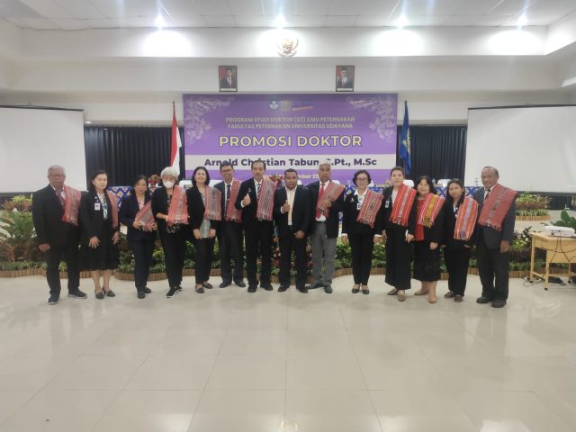 Fakultas Peternakan Universitas Udayana kembali melahirkan seorang doktor di bidang Ilmu Peternakan, Arnold Christian Tabun merupakan dosen pada Jurusan Peternakan Politeknik Pertanian Negeri Kupang, melalui ujian terbuka promosi doktor yang dipimpin Ketua Sidang, Koordinator Program Studi Doktor Ilmu Peternakan Fakultas Peternakan Universitas Udayana Prof. Dr. Ir. Ni Nyoman Suryani, M.Si., Jumat, 18 November 2022.