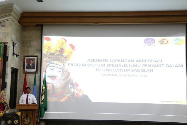 Dalam rangka menjaga dan meningkatkan mutu pendidikan serta layanan, Fakultas Kedokteran Universitas Udayana Re-Akreditasi Program Studi Spesialis Ilmu Penyakit Dalam. Bertempat di ruang Dr. AA Made Djelantik, Assessment Lapangan oleh LAM-PTKes diselenggarakan pada 23 dan 24 Maret 2022 dengan 2 orang asesor yaitu Dr. dr. Mohammad Rizki Akbar, M.Kes, SpJP(K)., FIHA., FAsCC (Assesor 1) dan dr. Aditiawati, SpA(K) (Assesor 2)