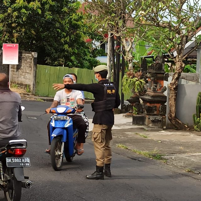 Penertiban prokes di Jalan Kebo Iwa, Padangsambian Denpasar.