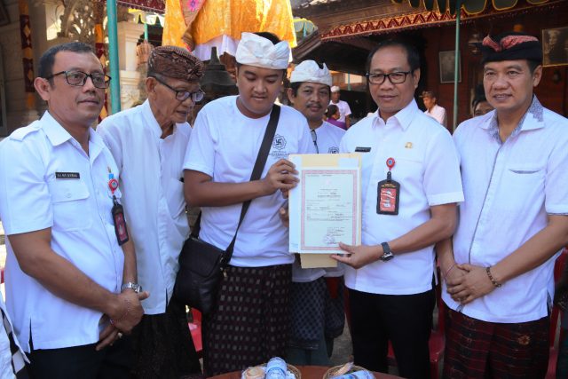 Seperti yang dilaksanakan, Rabu (5/2) lalu, Wakil Bupati Badung I Ketut Suiasa didampingi Kadis Kependudukan dan Pencatatan Sipil AA Ngr Arimbawa menyerahkan akte kematian, perubahan kartu keluarga (KK) serta berkas pengurusan santunan kematian kepada ahli waris almarhum IB Sudiksa di Griya Dalem Kerobokan yang diterima oleh putranya Ida Bagus Gede Jaya Dwija Putra yang disaksikan oleh anggota DPRD Badung AA Ngr. Ketut Agus Nadi Putra serta tokoh masyarakat Kerobokan.