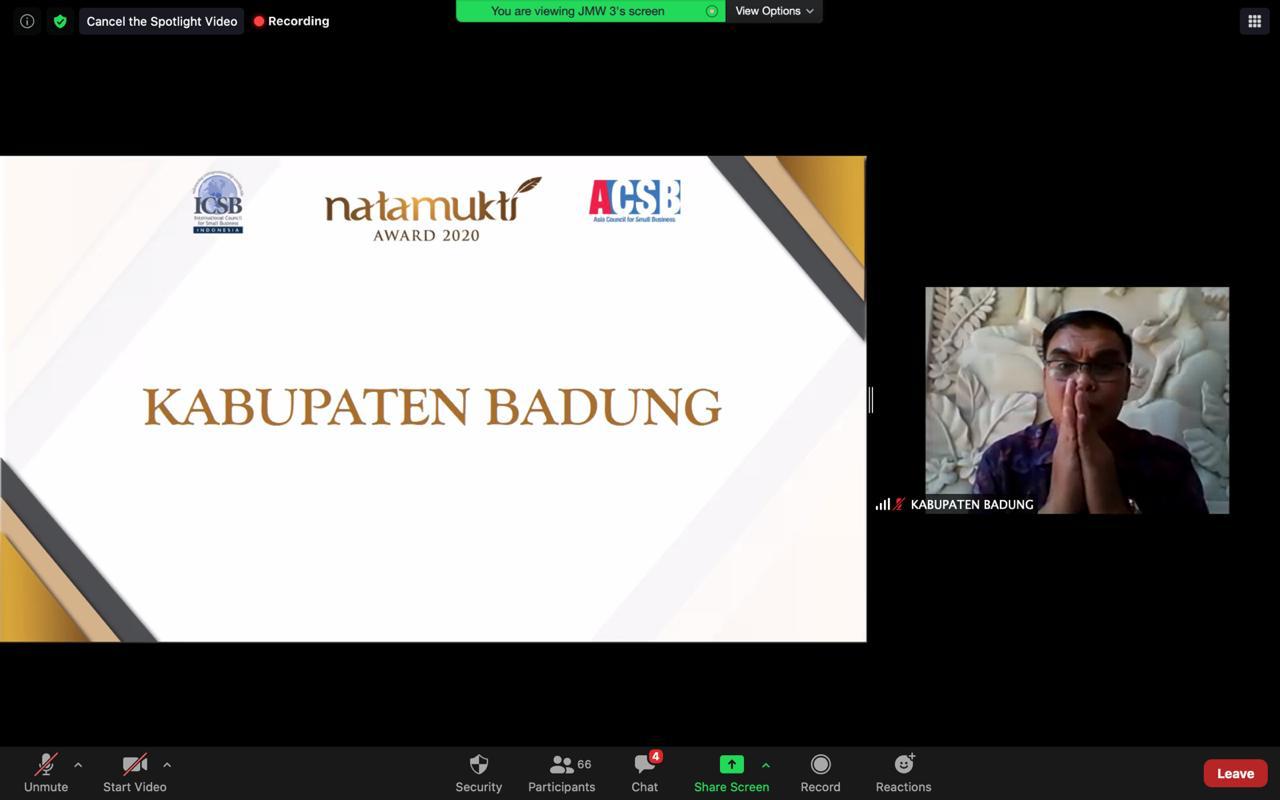 Komiten dan perhatian Bupati Badung I Nyoman Giri Prasta terhadap keberadaan usaha mikro kecil dan menengah (UMKM) di Kabupaten Badung mendapat pengakuan dari Kementerian Koperasi dan UKM RI. Terhadap keberhasilan dalam mendorong keberlangsungan UMKM di wilayahnya, Badung berhasil meraih penghargaan berupa Piala Natamukti dari International Council for Small Business (ICSB) Indonesia bersama Kementerian Koperasi dan UKM. Penghargaan diterima oleh Kepala Dinas Koperasi, Perdagangan dan UKM Kabupaten Badung I Made Widiana melalui aplikasi zoom meeting dari ruang kerjanya, Kamis (17/9).