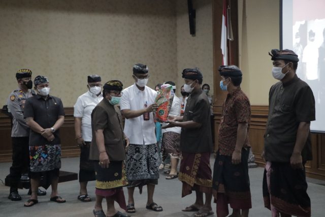 Bupati Badung dalam kesempatan ini diwakili oleh Kepala Dinas Pertanian dan Pangan Kabupaten Badung I Wayan Wijana menyerahkan secara simbolis subsidi benih padi kepada subak se-Kabupaten Badung tahun 2022, dilanjutkan dengan menyerahkan piagam penghargaan kepada Forkopimda Badung, bertempat di Ruang Pertemuan Kerta Gosana, di Puspem Badung, Senin (30/5). Turut hadir Ketua DPRD Kabupaten Badung Putu Parwata, anggota DPRD Badung I Gusti Lanang Umbara, Kepala Bapenda Badung I Made Sutama, perwakilan Forkopimda Badung, camat se-Badung, Ketua Madya Subak Kabupaten Badung I Made Suka serta para krama subak se-Badung.