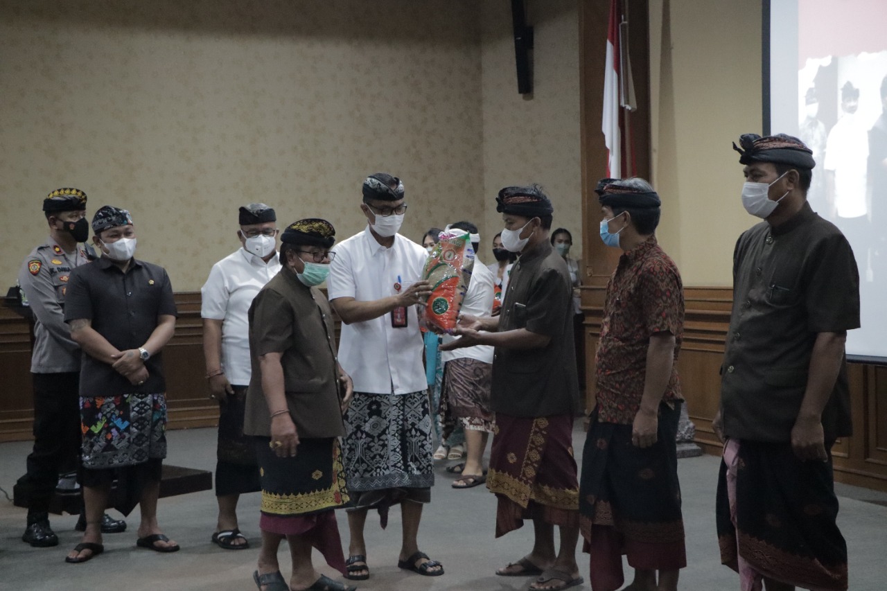 Lebih lanjut dikatakan, sebagai wujud dukungan pemerintah dalam mempertahankan aktivitas dari sektor pertanian, Pemerintah Kabupaten Badung berkomitmen untuk selalu memberikan perhatian bagi kebutuhan dasar para petani. Berbagai program kegiatan yang sudah dirancang melalui pembangunan rehabilitas saluran irigasi, bantuan subsidi benih, pupuk nonsubsidi dan obat-obatan seperti Pestisida, bantuan alat mesin pertanian, alat pasca panen, jalan usaha tani (JUT). ”Sebagai bukti nyata komitmen dan perhatian terhadap sektor pertanian, pada hari ini saya menyerahkan subsidi benih padi secara simbolis kepada subak se-Kabupaten Badung. Diharapkan nanti dapat meningkatkan produktivitas padi pada lahan sawah seluas 9.495,35 hektar. Sebagai salah satu upaya untuk mengurangi pengeluaran petani, di samping mendorong peningkatan nilai tukar petani (NTP), juga menjaga ketersediaan pangan yang strategis bagi masyarakat Badung. Pihaknya juga memberikan apresiasi dan penghargaan yang setingginya kepada Forkopimda Kabupaten Badung sudah ikut mendukung sekaligus ikut berpartisipasinya dalam menjaga ketahanan pangan kepada masyarakat di tengah situasi pandemi covid-19,” imbuhnya.