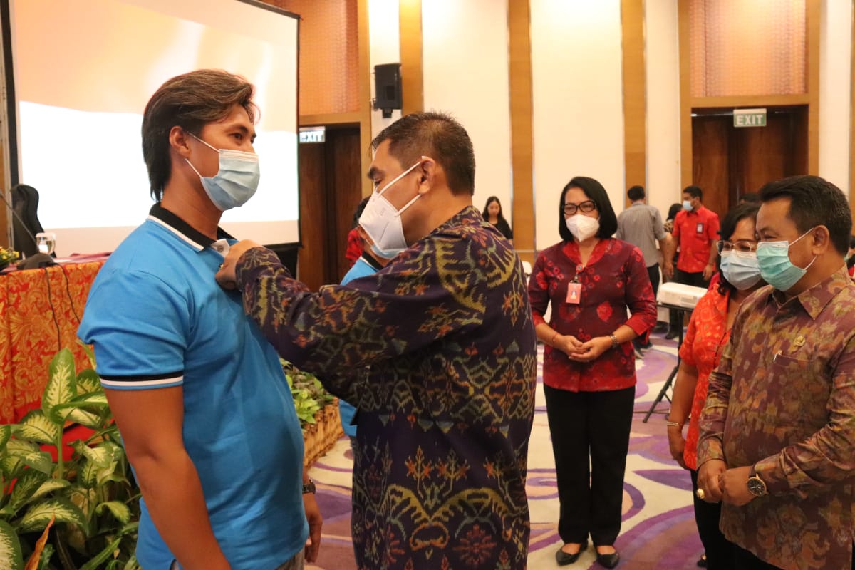Kepala Dinas Koperasi, UKM dan Perdagangan Kabupaten Badung I Made Widiana membuka Sosialisasi Penerapan Protokol Kesehatan (Prokes) bagi insan pelaku usaha mikro kecil dan menengah (UMKM) bertempat di Balangan Hall Inna Kuta Kecamatan Kuta Kabupaten Badung, Selasa (1/12/2020). Hadir dalam acara tersebut Kadis LHK Kabupaten Badung I Wayan Puja, Kabid UMKM pada Dinas Perdagangan dan UMKM Badung IG Suwartini, Kabid Kesiapsiagaan BPBD I Wayan Netra serta perangkat daerah terkait di lingkungan Pemerintah Kabupaten Badung.