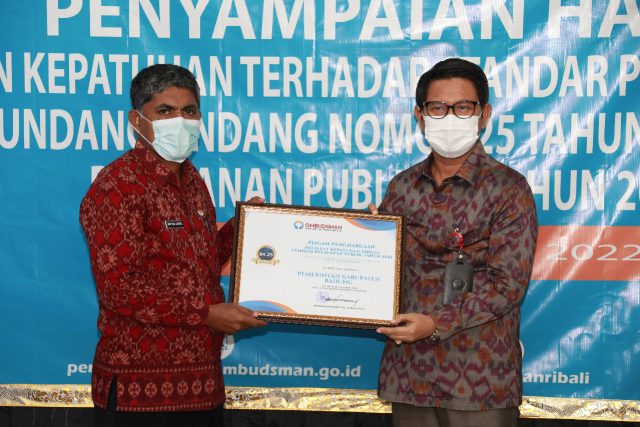 Sementara itu Kepala Ombudsman RI Perwakilan Bali Umar Ibnu Alkhatab mengatakan, tujuan dilakukannya penyerahan sertifikat ini adalah untuk meningkatkan kualitas pelayanan publik serta pencegahan maladministrasi melalui implementasi komponen standar pelayanan pada unit pelayanan publik. Pihaknya mengatakan sudah melakukan penilaian terhadap seluruh kabupaten/kota di Bali termasuk Provinsi Bali, hanya yang mendapat indikator hijau terdapat 3 kabupaten saja yaitu Kabupaten Badung, Kabupaten Tabanan dan Kabupaten Klungkung yang lainnya masih di indikator kuning yang artinya belum optimal.