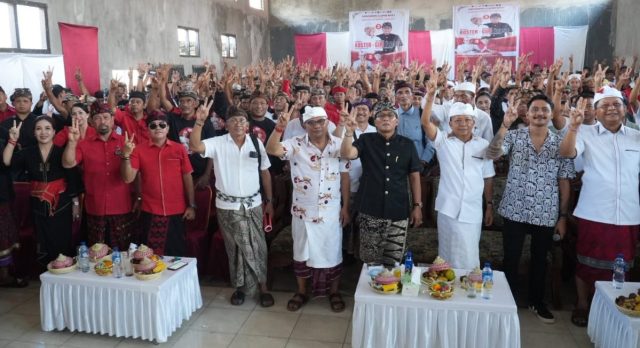 “Koster-Giri, Bangkit Jaya Menang. Wee, menyela Wii,” Kata Bagus Wirata disambut ribuan warga. (sar/r)