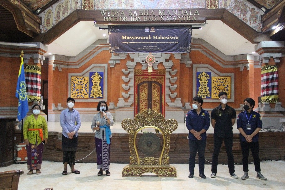 Badan Perwakilan Mahasiswa Fakultas Ilmu Budaya (BPMFIB) Universitas Udayana menyelenggarakan Musyawarah Mahasiswa (Musma) 2021. Kegiatan ini berlangsung pada Kamis, 23 Desember 2021 bertempat di Auditorium Widya Sabha Mandala Prof. Dr. Ida Bagus Mantra, Fakultas Ilmu Budaya, Denpasar.