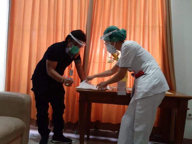 Tiba di Wing Amerta pada hari ini, Senin (14/9/2020) pukul 07.00 Wita, Bapaslon diterima oleh tim pemeriksa yang diketuai oleh dr. I Wayan Wartawan, langsung diarahkan menuju ruang admisi untuk registrasi dan mengganti pakaian dengan jubah pemeriksaan kesehatan.