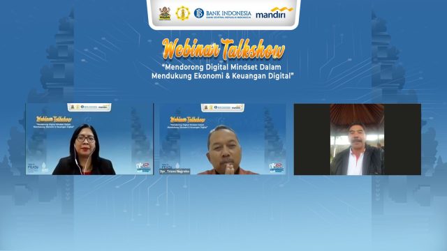 Kantor Perwakilan Bank Indonesia Provinsi Bali berkolaborasi dengan Universitas Hindu Negeri I Gusti Bagus Sugnwa Denpasar menyelenggarakan web seminar talkshow bertajuk “Mendorong Digital Mindset Dalam Mendukung Ekonomi dan Keuangan Digital” Jumat (1/7/2022). Tema tersebut diangkat dengan latar belakang bahwa mindset atau pola pikir merupakan salah satu elemen penting dalam mendorong transformasi digital.
