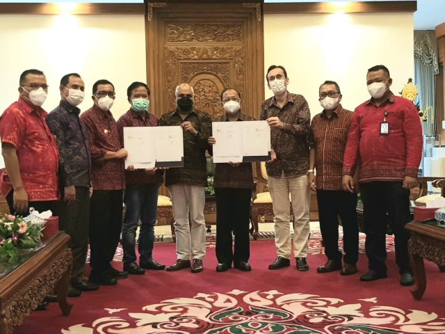 KERJA SAMA – BI memfasilitasi kerja sama Marriott International dengan pelaku usaha di Bali. Penandatanganan kerja sama disaksikan Gubernur Wayan Koster.