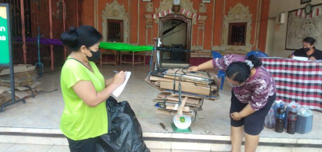 Penimbangan sampah non-organik di Bank Sampah Mawar Banjar Tengah Peguyangan.