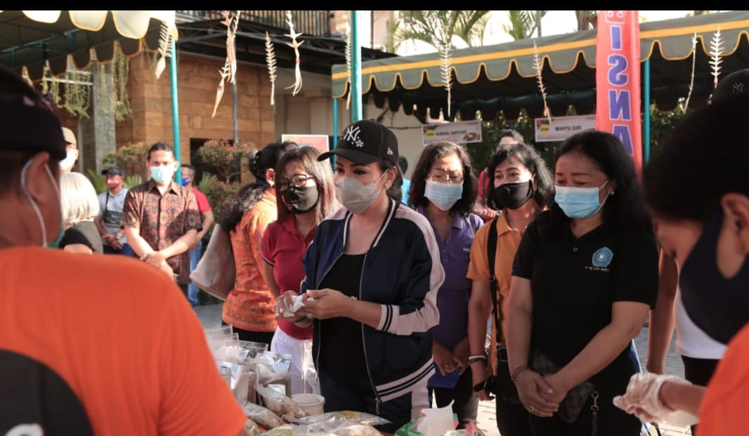 Bantu Masyarakat di Masa Pandemo Covid-19, Ny. IA Selly Mantra Hadiri Gebyar Pasar Minggu