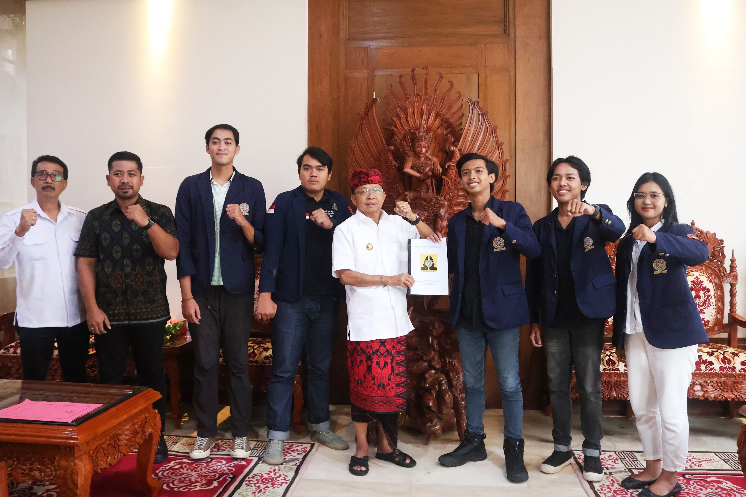 Dalam audiensinya di Jayasabha, Denpasar pada Rabu (16/4) sore, jajaran BEM Universitas Udayana lewat ketuanya, I Wayan Arma Surya Darmaputra mengatakan, sangat mendukung larangan produksi air minum dalam kemasan (AMDK) di bawah satu liter di Bali.
