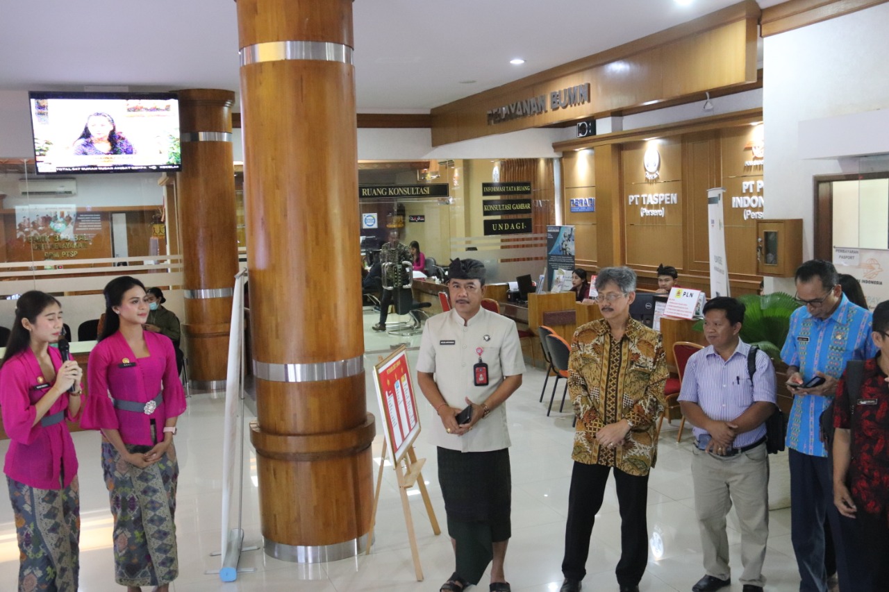 Kementerian Pendayagunaan Aparatur Negara dan Reformasi Birokrasi (Men-PANRB) melalui Deputi Bidang Pelayanan Publik melaksanakan Benchmarking Implementasi Standar Pelayanan Publik di Dinas Penanaman Modal dan Pelayanan Terpadu Satu Pintu (DPMPTSP) Kabupaten Badung, Kamis (12/3). Acara ini tindaklanjut kegiatan Sosialisasi dan Bimbingan Teknis (Bimtek) Standar Pelayanan Publik bagi Daerah Kawasan Ekonomi Khusus (KEK) dan Tujuan Wisata Internasional. Hadir dalam kesempatan tersebut Asisten Deputi Koordinasi Pelaksanaan, Kebijakan, dan Evaluasi Pelayanan Publik Wilayah II Jeffrey Erlan Muller, Kasubbag Analis Biro RBP Srena Polri Nany Pribadi serta para peserta yang berjumlah 69 orang dari perwakilan Pemda dan Polres Kabupaten Malang, Kota Batu, Kabupaten Kutai Timur, Kabupaten Lombok Tengah, Kabupaten Berau dan Kabupaten Manggarai Barat.