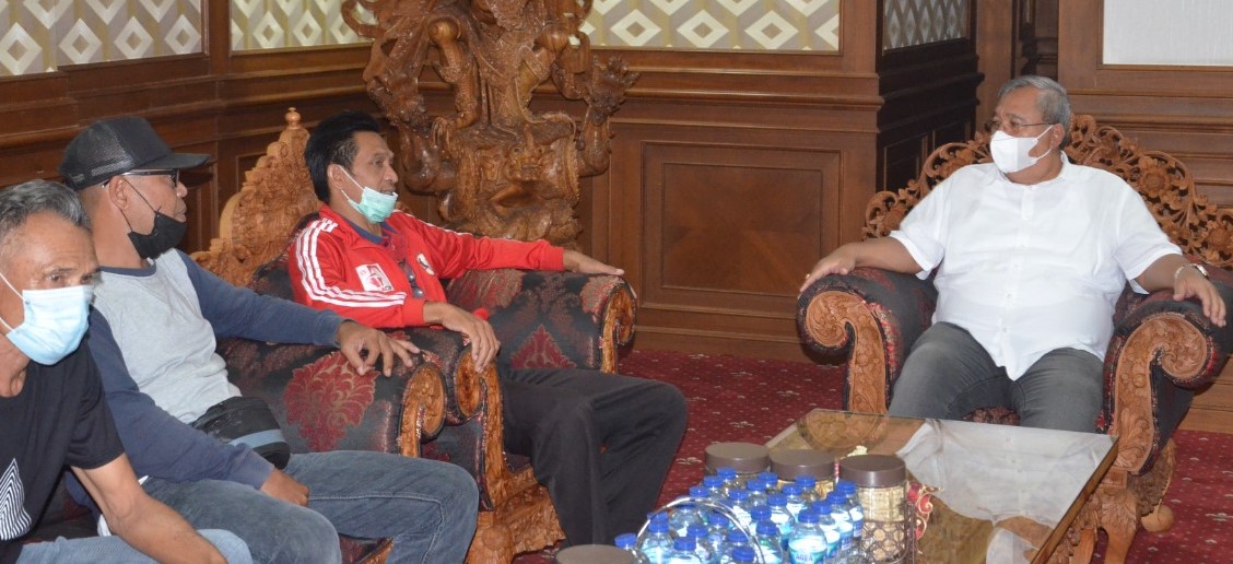 SOPIR KBS – Ketua DPRD Badung Putu Parwata menerima aspirasi dari sejumlah sopir KBS, di ruang kerjanya, Rabu (9/6/2021).
