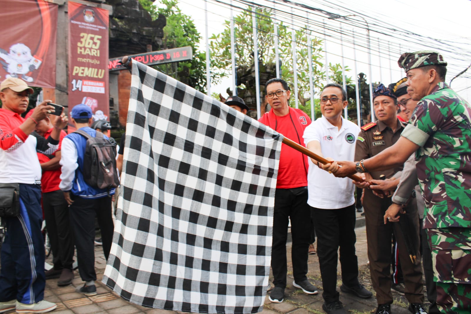 BERSEPEDA – Walikota Denpasar, IGN Jaya Negara melepas secara resmi bersepeda bersama dalam rangka 365 hari menuju Pemilu 2024 di Kantor KPU Kota Denpasar, Selasa (14/2).