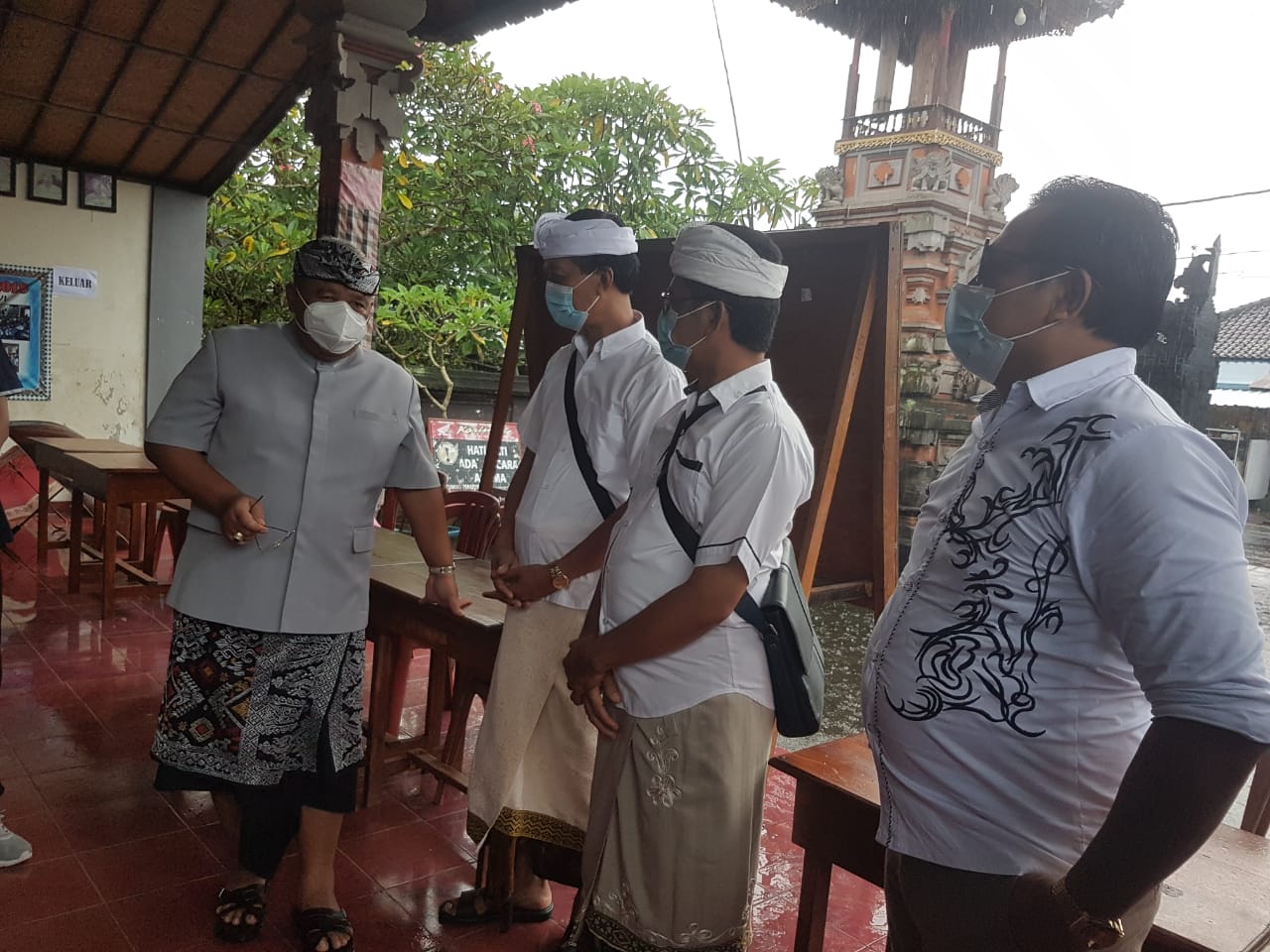 Ketua DPRD Badung Dr. Drs. Putu Parwata MK, M.M., Sabtu (6/2/2021) memantau kesiapan tempat pemungutan suara (TPS) pemilihan kepala desa (pilkades) serentak di Kabupaten Badung. Saat memantau TPS, Putu Parwata didampingi Wakil Ketua Wayan Suyasa, S.H. dan anggota DPRD Badung Made Yudana.