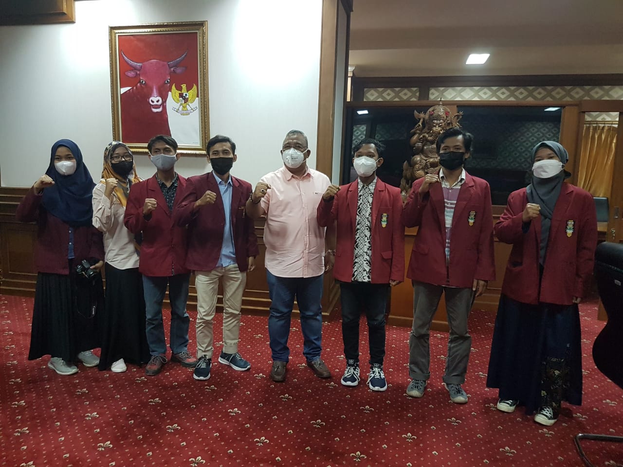 Ketua DPRD Badung Dr. Drs. Putu Parwata MK, M.M., Kamis (13/1/2022) menerima audiensi Pimpinan Cabang Ikatan Mahasiswa Muhammadiyah (IMM) Kabupaten Badung. Pimpinan Cabang IMM yang hadir yakni Ketua Irfani Maulana Syah Rozat dan Sekretaris Elma Haslinda beserta sejumlah anggota. Sementara Putu Parwata didampingi staf Fasilitasi DPRD Badung Subhan.