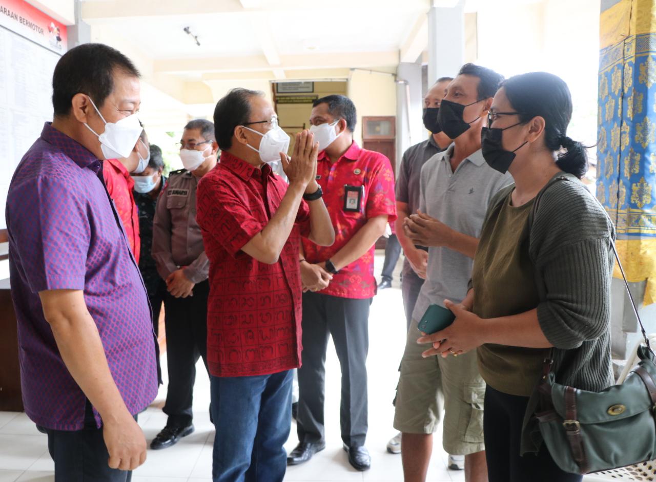 Gubernur Bali, Wayan Koster meninjau pelayanan publik di Kantor UPTD Pelayanan Pajak dan Retribusi Daerah Provinsi Bali di Kabupaten Badung serta di Kabupaten Tabanan pada, Sabtu (Saniscara Paing, Langkir) 27 November 2021.