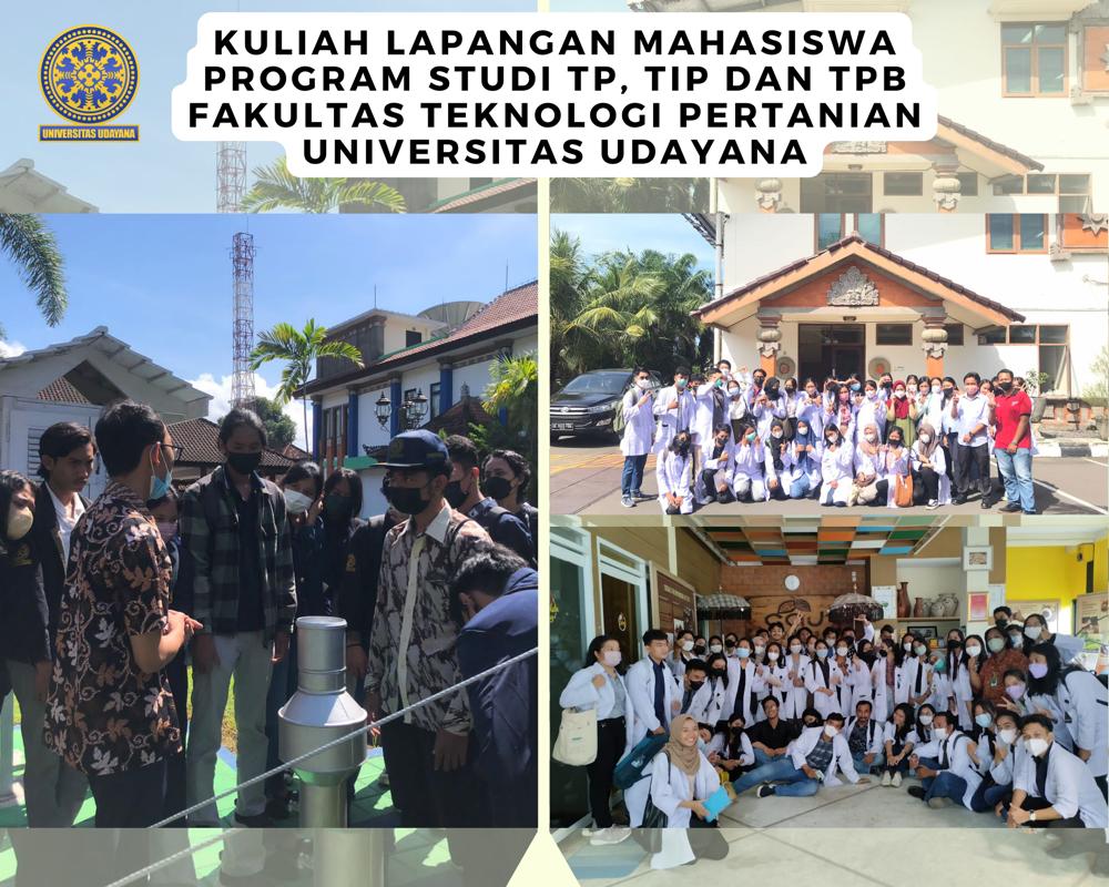 Ketiga Program Studi (Prodi) yaitu Program Studi Teknologi Pangan, Program Studi Teknologi Industri Pertanian dan Program Studi Teknik Pertanian dan Biosistem Fakultas Teknologi Pertanian Universitas Udayana (FTP Unud) memberikan pengalaman di luar kampus bagi mahasiswa dengan melaksanakan kuliah lapangan.