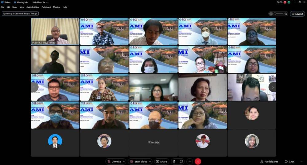 Lembaga Pengembangan Pembelajaran dan Penjaminan Mutu (LP3M) Universitas Udayana menggelar kegiatan Penyegaran Audit Mutu Internal (AMI) yang berlangsung secara daring melalui aplikasi Cisco Webex, Rabu (27/07/2022).