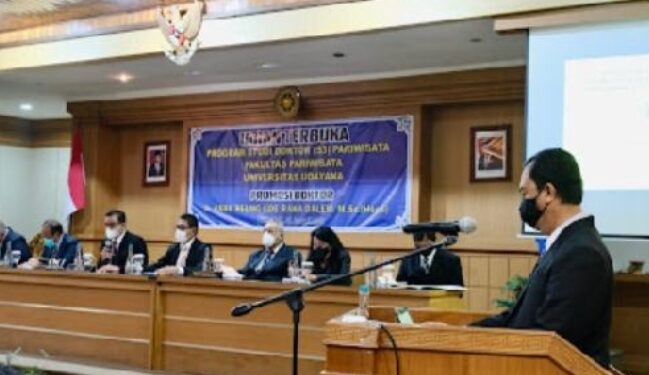 Fakultas Pariwisata Universitas Udayana kembali melahirkan seorang doktor pariwisata melalui Sidang Terbuka Promosi Doktor, dengan promovendus Anak Agung Gde Raka Dalem, di Ruang Aula Lantai 3 Gedung Pascasarjana Unud, Denpasar, Senin (31/1/2022).