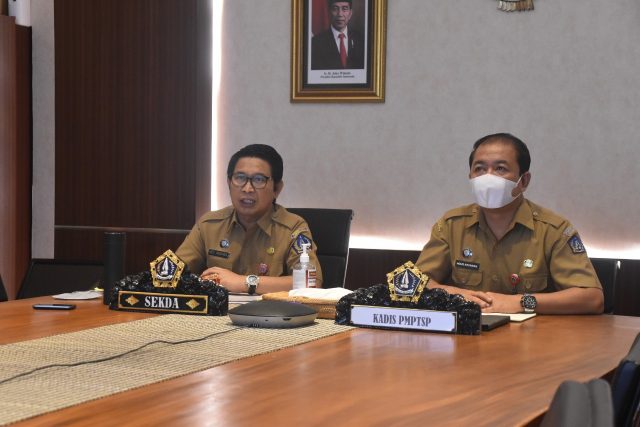 Sekretaris Daerah Kabupaten Badung I Wayan Adi Arnawa didampingi Kepala Dinas Penanaman Modal dan Pelayanan Terpadu Satu Pintu (DPMPTSP) Kabupaten Badung I Made Agus Aryawan memaparkan nomine Kabupaten Badung sebagai salah satu peserta dari 25 nomine yang terpilih menjadi nomine pemerintah daerah yang berkinerja sangat baik dalam penyelenggaraan Pelayanan Terpadu Satu Pintu (PTSP) dan Percepatan Pelaksanaan Berusaha (PPB) Pemerintah Kabupaten sesuai dengan hasil penilaian dari tim penilai pada tanggal 18 Juni 2021 di Jakarta. Pemaparan nomine dilaksanakan secara zoom bertempat di Ruang Rapat Sekda Kabupaten Badung, Senin (28/6).