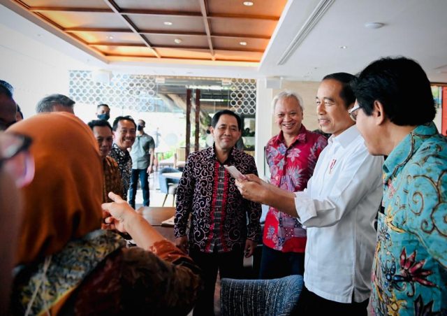 Presiden Joko Widodo bertemu dengan teman-temannya semasa mengenyam pendidikan di Fakultas Kehutanan, Universitas Gadjah Mada (UGM). Tiba sekitar pukul 09.00 WIB di Kawasan Ambarukmo, Kabupaten Sleman, pada Minggu, 16 Oktober 2022, Presiden Jokowi tampak berbincang santai dengan teman-teman semasa kuliah.