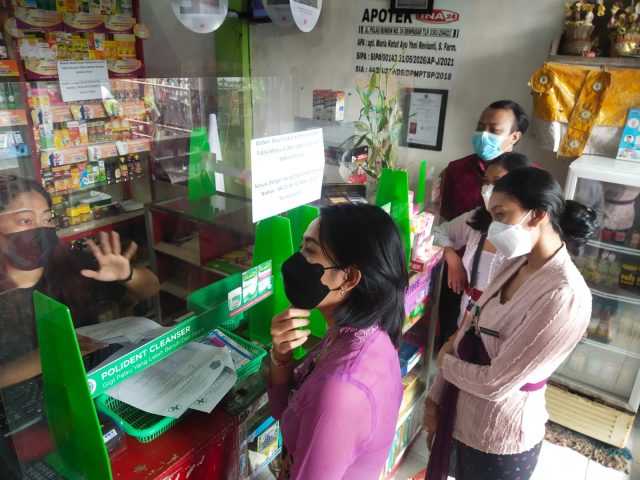 PEMBINAAN – Dinkes Kesehatan Kota Denpasar menggelar pembinaan di sejumlah apotek di Densel dan Dentim, Selasa (25/10/2022).