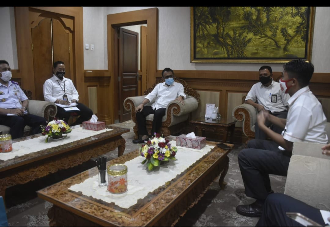 AUDIENSI – Wawali Kota Jaya Negara saat menerima audiensi PLN UP3 Bali Selatan, Rabu (19/8/2020).