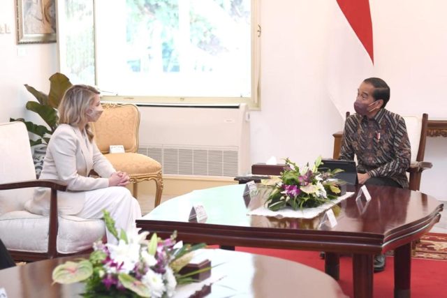 MENLU KANADA – Presiden Jokowi menerima kunjungan Menlu Kanada Melanie Joly, Senin (11/4).