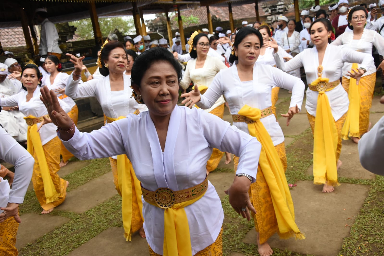 TARI REJANG – WHDI Kota Denpasar ngayah Tari Rejang Sari dan Rejang Renteng dan Forum Perbekel/Lurah saat ngayah Tari Baris Gede serangkaian Bhakti Penganyar di Pura Mandhara Giri Semeru Agung, Lumajang pada Kamis (21/7).
