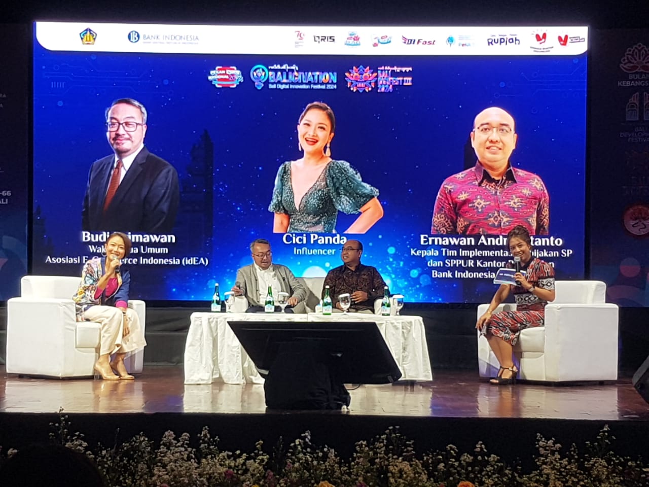 Serangkaian Pekan QRIS Nasional, Jumat (16/8/2024) Kantor Bank Indonesia (BI) Provinsi Bali menggelar talkshow dengan tema “Keluarga Digital Savvy: PeKA Bertransaksi Aman Terlindungi. Talkshow yang digelar di Gedung Ksirarnawa Art Center Denpasar tersebut, menampilkan influencer populer Cici Panda, Wakil Ketua E-commers Indonesia Budi Primawan dan pejabat BI Bali Ernawan Andreastanto.