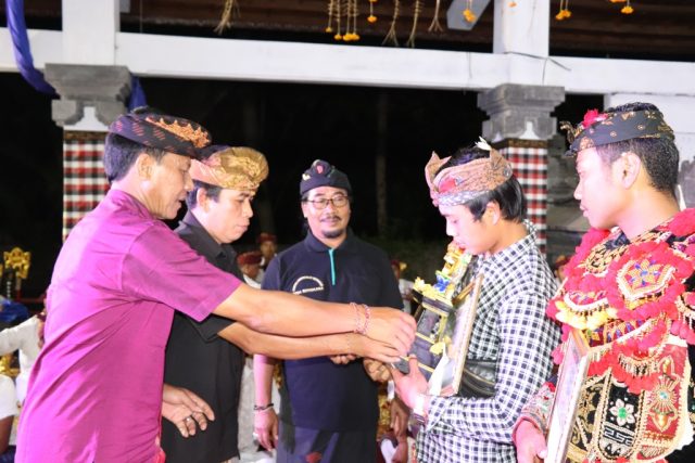 Pada akhir acara diserahkan, piala dan piagam kepada para juara lomba Bapang Barong, Jauk dan Kendang Tunggal. Diserahkan pula penghargaan kepada juara lomba Banjar bersih bebas sampah plastik.