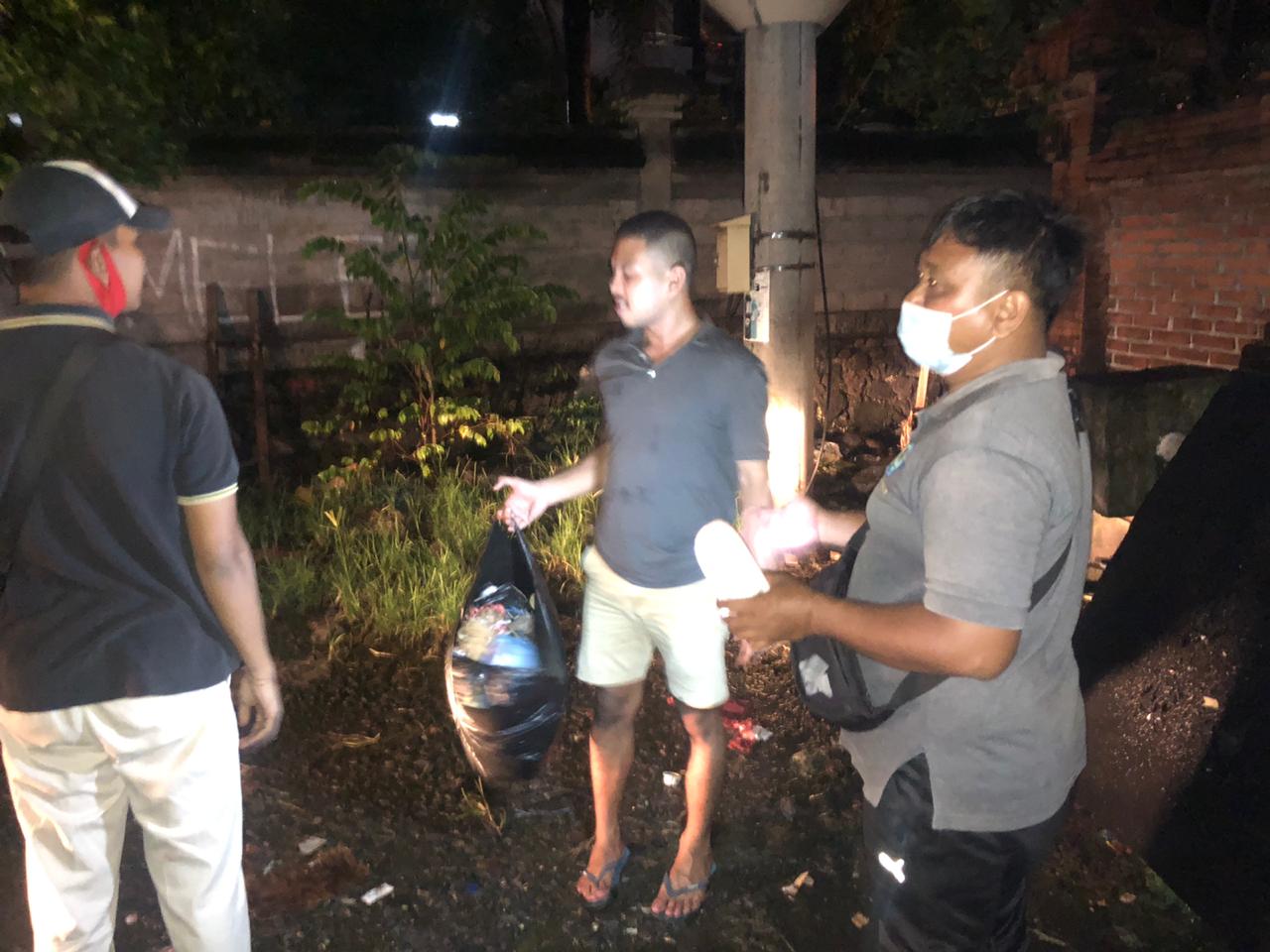 BUANG SAMPAH – Penertiban 2 orang masyarakat yang kedapatan membuang sampah sembarangan di kawasan Lapangan Kompyang Sujana, Kelurahan Padangsambian pada Jumat (12/2) malam.