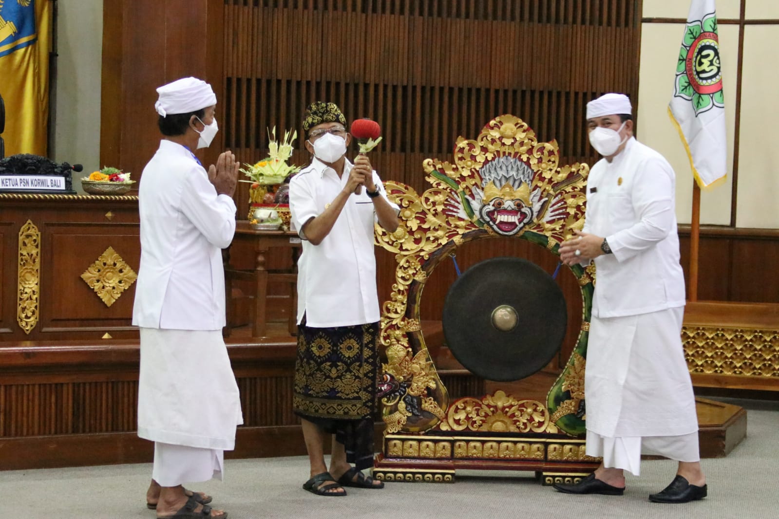 Ditandai dengan pemukulan gong, Gubernur Bali Wayan Koster secara resmi membuka Lokasabha III Pinandita Sanggraha Nusantara (PSN) Korwil Bali yang berlangsung di Ruang Wiswa Sabha Utama Kantor Gubernur, Minggu (12/12/2021). Dalam sambutannya, Gubernur Wayan Koster menyinggung tugas mulia seorang pinandita yang menjadi perantara saat umat Hindu melaksanakan ritual keagamaan.