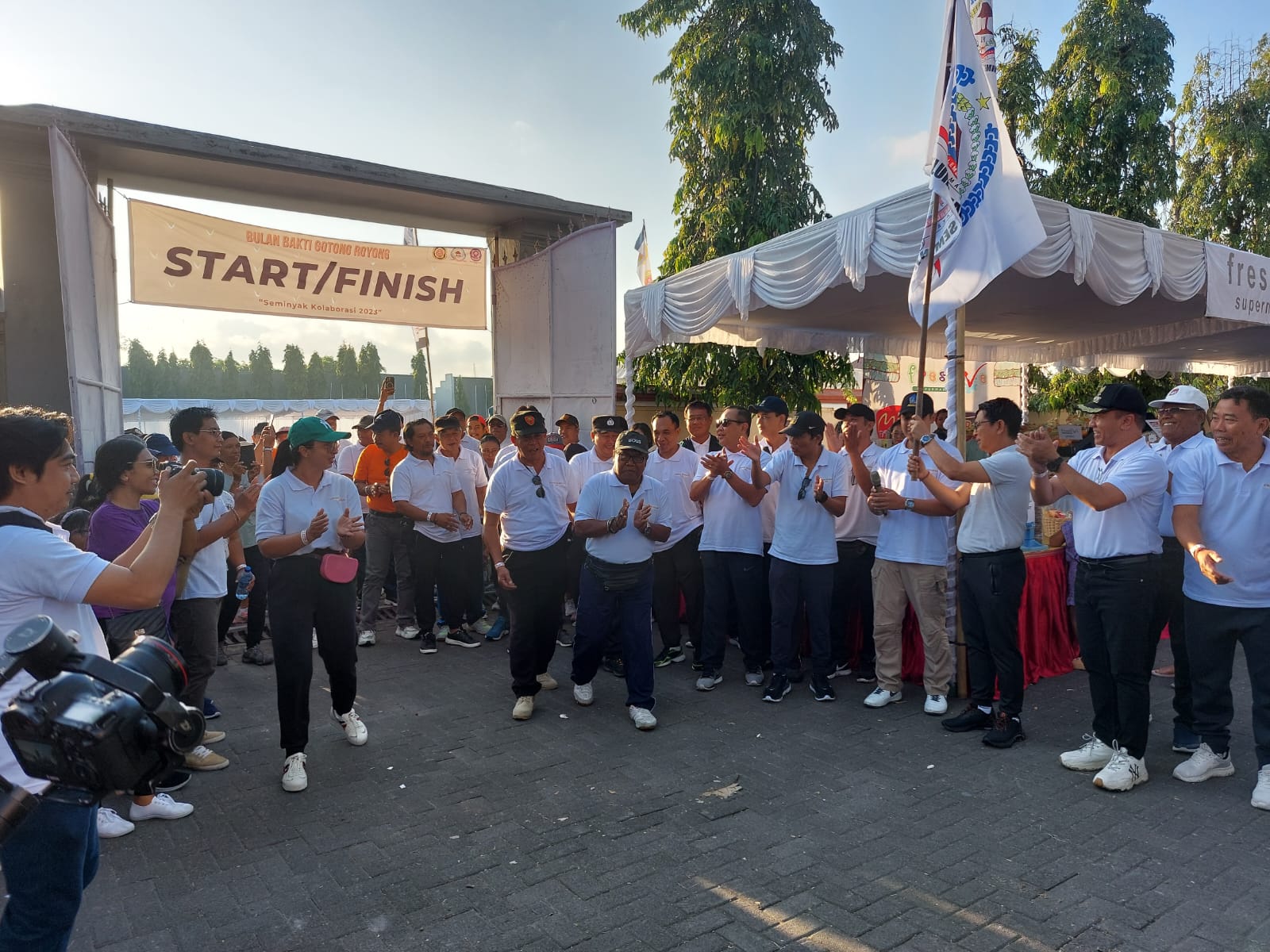 BULAN BAKTI – Sekda Badung I Wayan Adi Arnawa saat menghadiri puncak acara bulan bakti gotong royong “Seminyak Kolaborasi 2023” sekaligus melepas kegiatan gerak jalan sehat di Lapangan Banteng Kelurahan Seminyak, Kecamatan Kuta, Minggu (3/9).